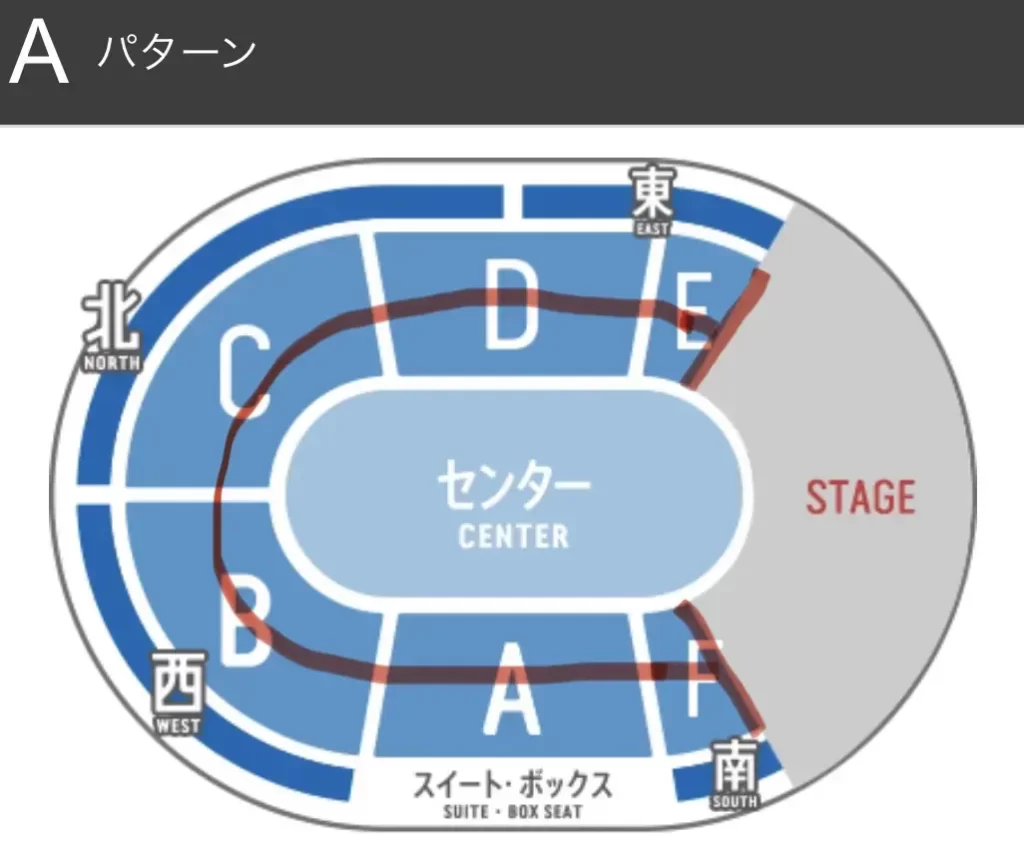 横浜アリーナはステージの使い方が3パターンくらいありますが、ジャニーズ(現スタエン)の横アリ公演はほとんどがAパターン。